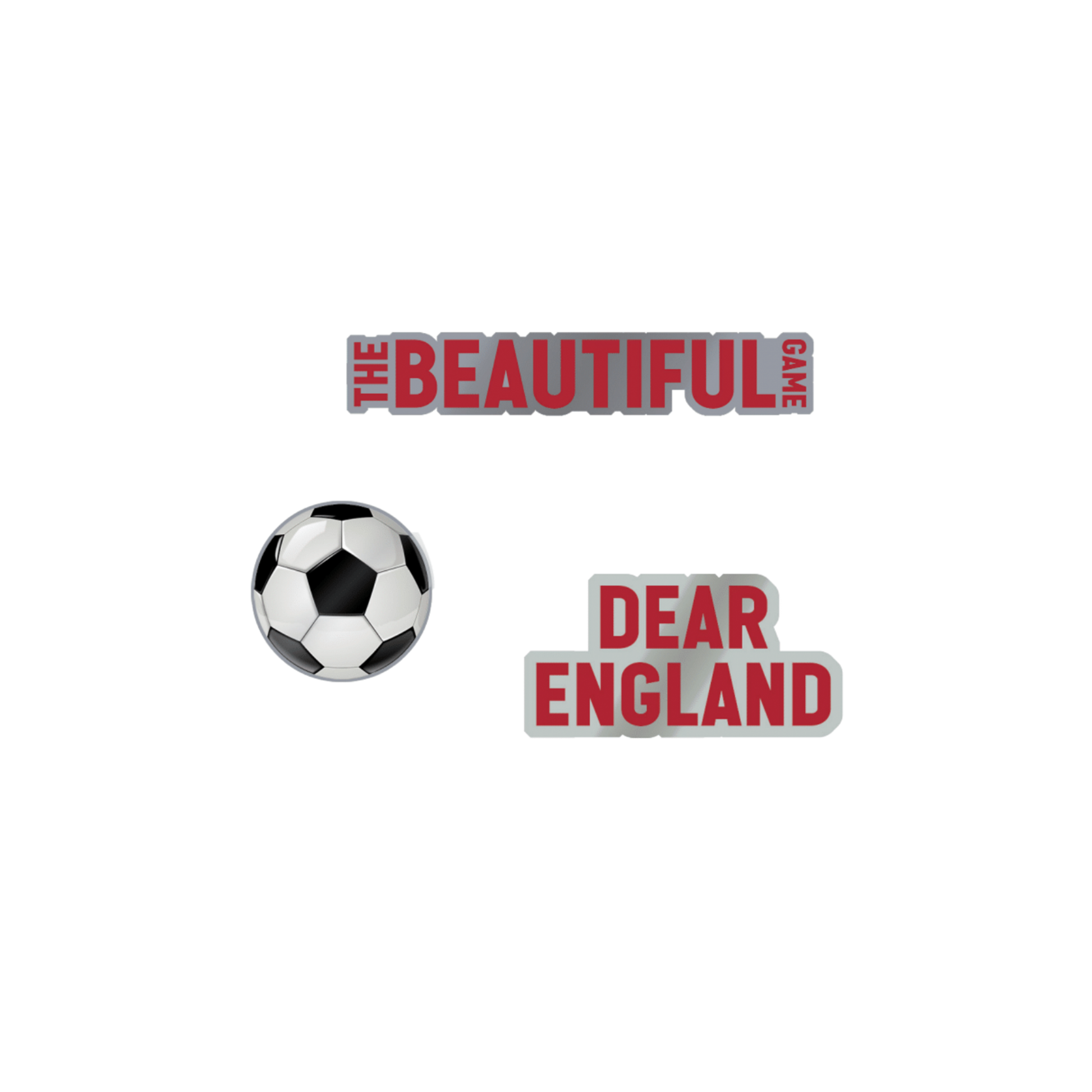 A 3-piece set, including 2 soft enamel pins, and a printed metal football-shaped pin.